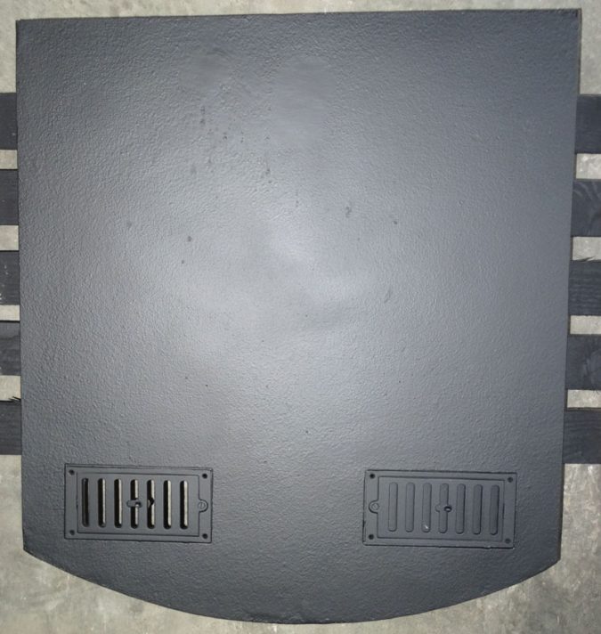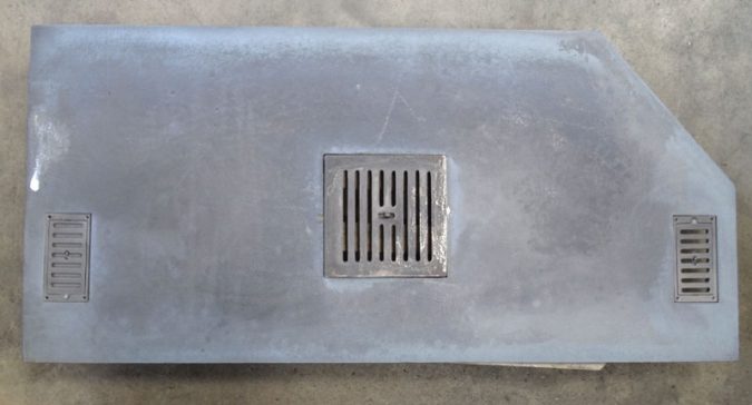 Plaque de sol en fonte avec deux réservations pour grille d’aération