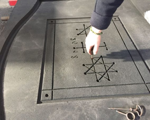 Création et personnalisation de la plaque en fonte avec mise en place sur le poteau.