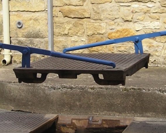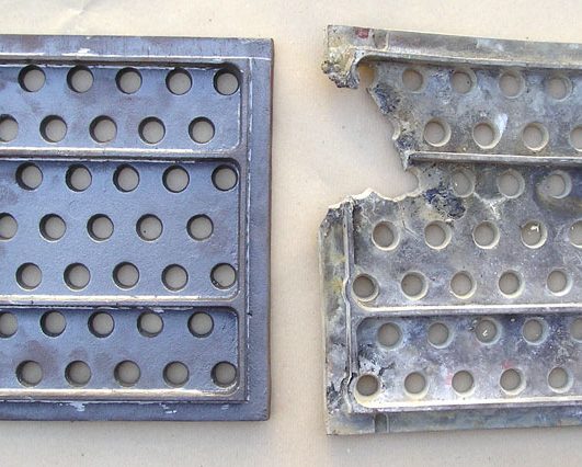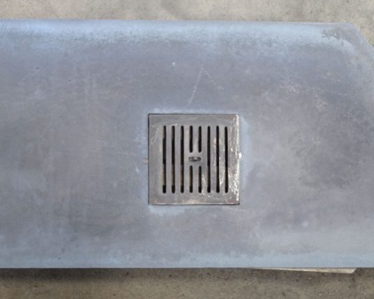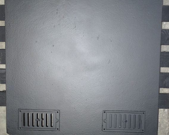 Plaque de sol en fonte avec deux réservations pour grille d’aération