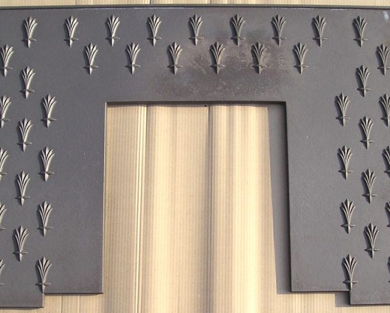 Modèle bois créé pour une plaque à poser horizontalement dans l’âtre